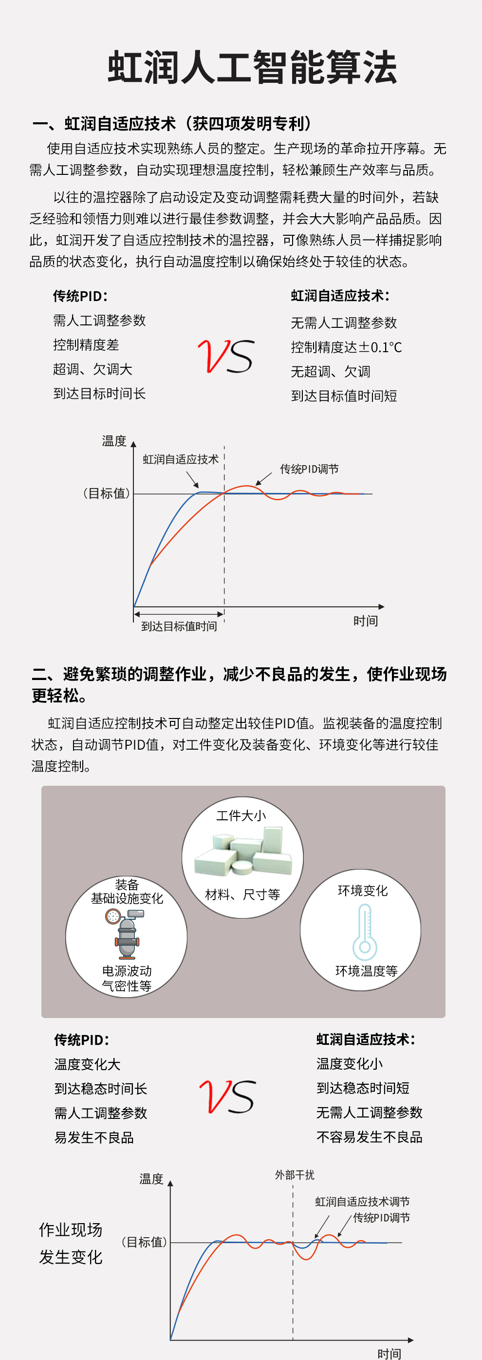虹潤公司是專業(yè)生產(chǎn)無紙記錄儀的國家專精特新“小巨人”企業(yè)。生產(chǎn)的觸摸屏調(diào)節(jié)無紙記錄儀,具有觸摸大屏顯示,真正人工智能算式,無需人工整定參數(shù),控制精度達(dá)士0.1°C,數(shù)據(jù)記錄與轉(zhuǎn)存, RS485/以太網(wǎng)通訊,5/7/9英寸可選等特點(diǎn)。產(chǎn)品獲得智能化控制器、人工智能調(diào)節(jié)器及調(diào)節(jié)方法、模糊PID控制儀及控制方法、平板無紙記錄儀、巡回檢測顯示方法及裝置等5項(xiàng)國家發(fā)明專利,主持起草物聯(lián)網(wǎng)智能記錄儀表通用技術(shù)條件、物聯(lián)網(wǎng)智能溫度儀表通用技術(shù)條件、工業(yè)過程測量和控制系統(tǒng)用智能調(diào)節(jié)器等3項(xiàng)國家標(biāo)準(zhǔn),通信系統(tǒng)多通道數(shù)據(jù)采集控制終端規(guī)范軍用標(biāo)準(zhǔn),以及空間數(shù)據(jù)與信息數(shù)據(jù)傳輸系統(tǒng)等2項(xiàng)航天標(biāo)準(zhǔn),參與國際5G標(biāo)準(zhǔn)制定,取得觸摸屏彩色調(diào)節(jié)無紙記錄儀等3項(xiàng)相關(guān)軟件著作權(quán)。產(chǎn)品廣泛應(yīng)用于電力、石化、冶金、化工、食品、制藥、熱處理、水處理、機(jī)械配套等諸多領(lǐng)域。