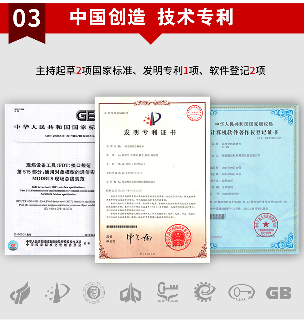 虹潤(rùn)公司是專業(yè)生產(chǎn)隔離器的國(guó)家專精特新“小巨人”企業(yè)。生產(chǎn)的智能高速隔離器 ,具有電壓電流遠(yuǎn)傳電阻輸入,10ms快速響應(yīng),輸入輸出電源三隔離,高抗干擾,低功耗發(fā)熱低等特點(diǎn)。產(chǎn)品獲得信號(hào)隔離器、一種二端子模塊、無(wú)源信號(hào)隔離器等3項(xiàng)國(guó)家發(fā)明專利,主持起草現(xiàn)場(chǎng)設(shè)備工具(FDT)接口規(guī)范、工業(yè)過(guò)程測(cè)量和控制系統(tǒng)用隔離式安全柵、工業(yè)過(guò)程測(cè)量和控制系統(tǒng)用配電器等3項(xiàng)國(guó)家標(biāo)準(zhǔn),以及通信系統(tǒng)多通道數(shù)據(jù)采集控制終端規(guī)范軍用標(biāo)準(zhǔn)。取得智能高速隔離器等3項(xiàng)相關(guān)軟件著作權(quán)。參與國(guó)際5G標(biāo)準(zhǔn)制定。產(chǎn)品廣泛應(yīng)用于電力、石化,冶金、制藥、水處理、機(jī)械配套等各種工業(yè)現(xiàn)場(chǎng)。