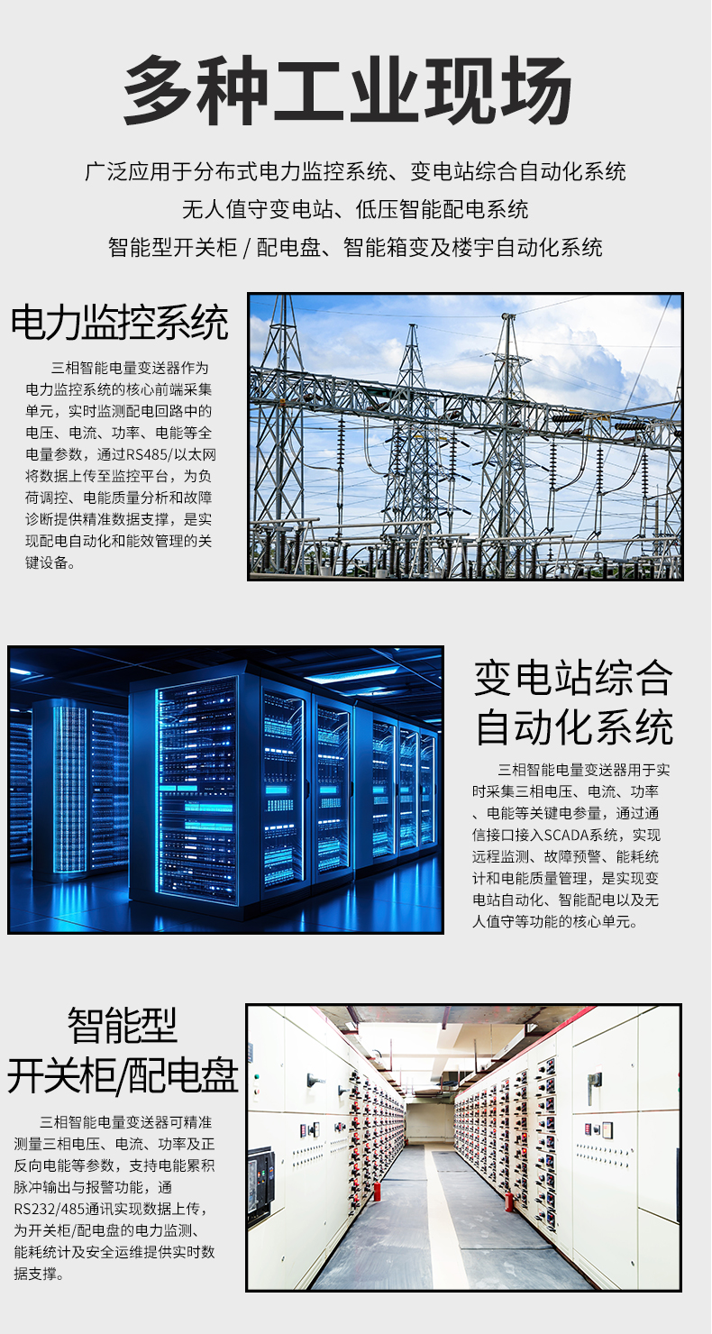 虹潤公司是專業(yè)生產(chǎn)電流傳感器的國家專精特新“小巨人”企業(yè)。生產(chǎn)的三相智能電量變送器,具有多種電參數(shù)測量,正反向電能累積,多種輸出信號,導軌壁掛共用, RS485/RS232通訊等特點。產(chǎn)品獲得基于一種交流信號變送器、交直流信號轉(zhuǎn)換電路、基于DCS技術的盤裝式三相電量表等3項國家發(fā)明專利,主持起草工業(yè)過程控制系統(tǒng)用模擬輸入兩位或多位輸出儀表國家標準,直流漏電流傳感器規(guī)范、通信系統(tǒng)多通道數(shù)據(jù)采集控制終端規(guī)范等2項軍用標準,以及現(xiàn)場設備集成等5項智能制造國家標準,參與國際5G標準制定,取得液晶綜合電量集中顯示儀等2項相關軟件著作權。產(chǎn)品廣泛應用于電力、冶金、化工、水泥、造紙、新能源、基礎設施等用電密集行業(yè)。
