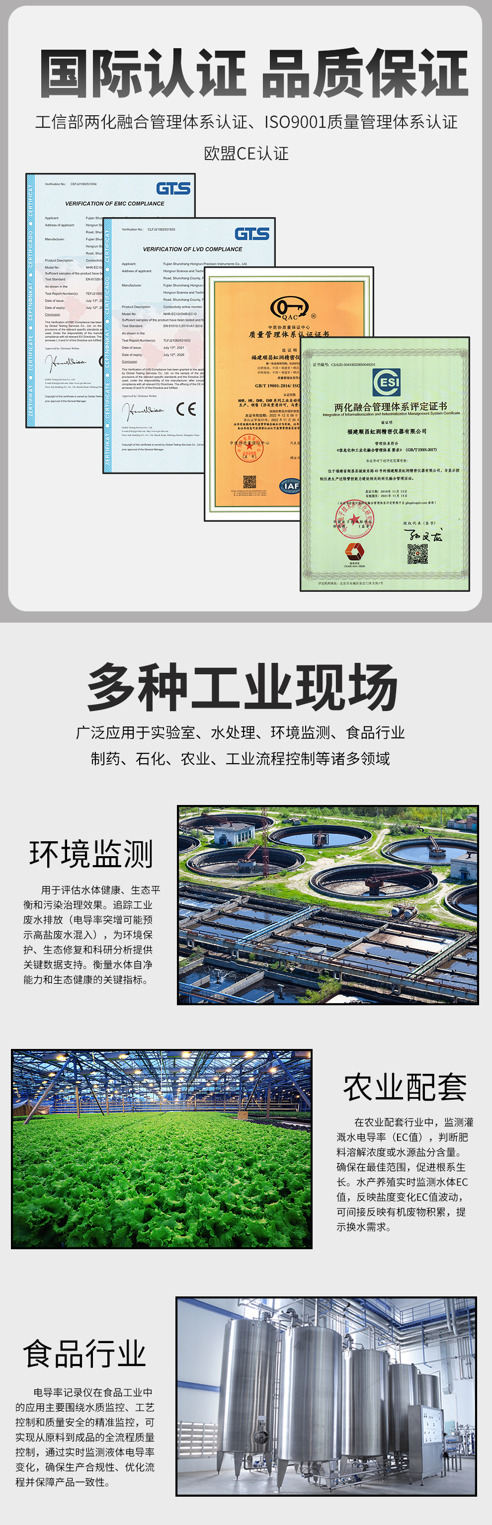 虹潤(rùn)公司是專(zhuān)業(yè)生產(chǎn)水質(zhì)分析儀的國(guó)家專(zhuān)精特新“小巨人”企業(yè)。生產(chǎn)的電導(dǎo)率記錄儀,具有模擬電極與數(shù)字電極切換輸入、測(cè)量精準(zhǔn)穩(wěn)定不跳字,數(shù)據(jù)記錄與轉(zhuǎn)存、RS485/以太網(wǎng)通訊,配套上位機(jī)管理軟件等特點(diǎn)。產(chǎn)品獲得一種平板無(wú)紙記錄儀、智能化控制器等2項(xiàng)國(guó)家發(fā)明專(zhuān)利;主持起草物聯(lián)網(wǎng)智能記錄儀表通用技術(shù)條件、現(xiàn)場(chǎng)設(shè)備工具(FDT)接口規(guī)范.、過(guò)程分析技術(shù)系統(tǒng)等3項(xiàng)國(guó)家標(biāo)準(zhǔn),以及通信系統(tǒng)多通道數(shù)據(jù)采集控制終端規(guī)范軍用標(biāo)準(zhǔn),參與國(guó)際5G標(biāo)準(zhǔn)制定,取得電導(dǎo)率無(wú)紙記錄儀表等4項(xiàng)相關(guān)軟件著作權(quán)。產(chǎn)品廣泛應(yīng)用于環(huán)保水務(wù)、市政供水、水產(chǎn)養(yǎng)殖、農(nóng)業(yè)灌溉、科研實(shí)驗(yàn)等諸多領(lǐng)域。