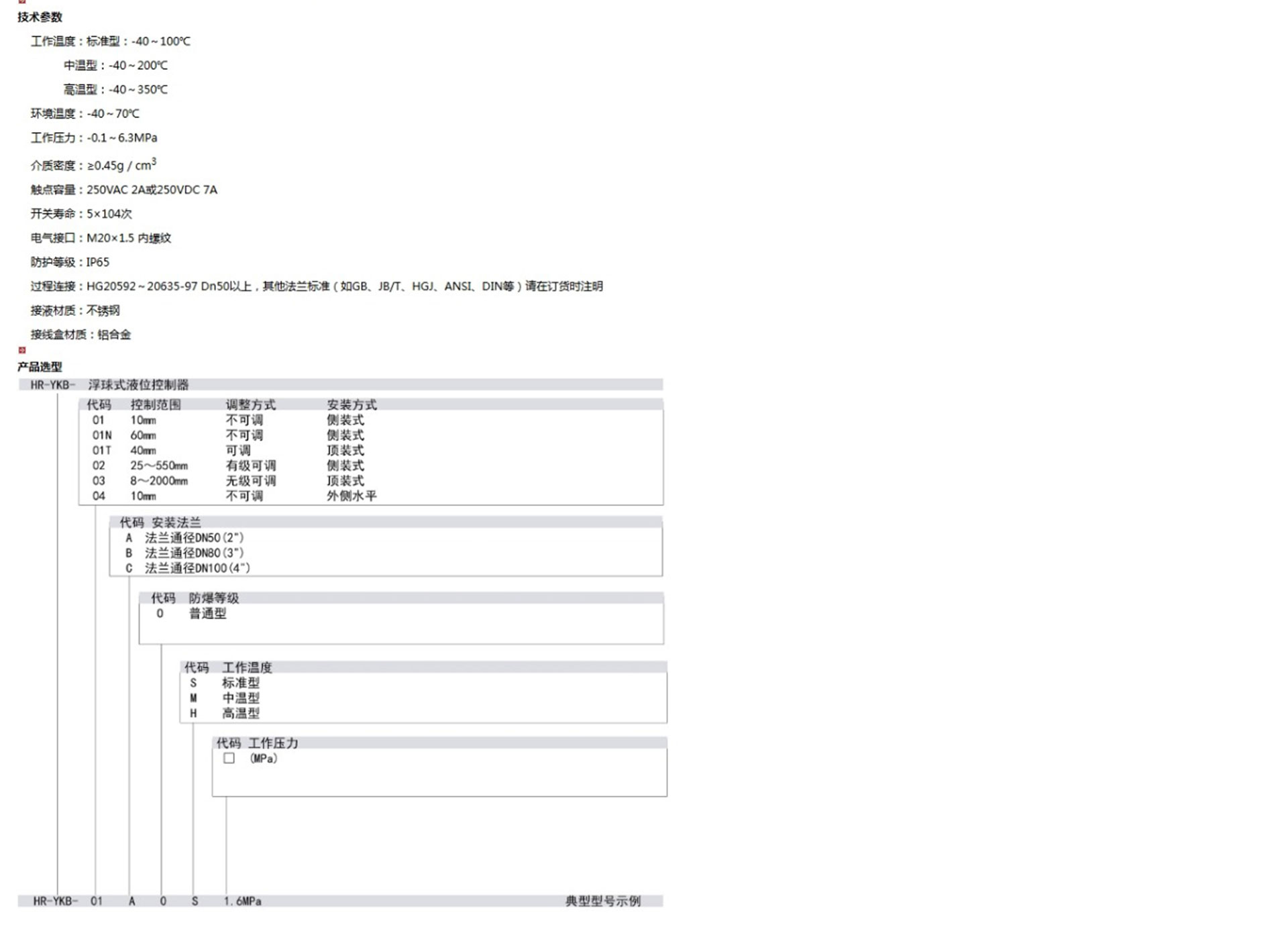 HR-YKB系列浮球式液位控制器